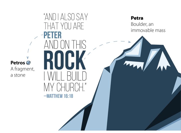 So, Christ’s statement actually reads like this: “I also say to you that you are Petros, and on this petra I will build My Church.”
