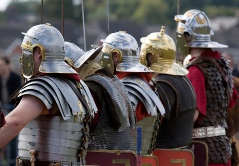 Usually the helmets were made of metal, though poorer soldiers or soldiers from the early days of the empire may have had leather helmets fortified with pieces of metal.